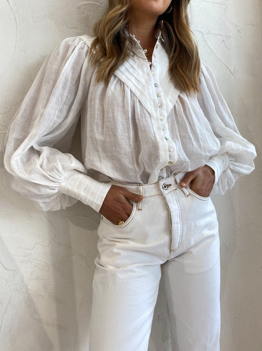 Alemais Halcyon Tuck Front Blouse In Ivory