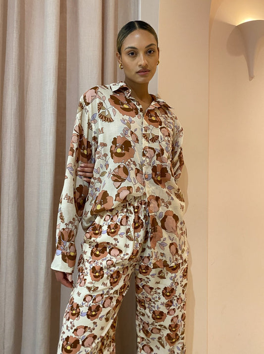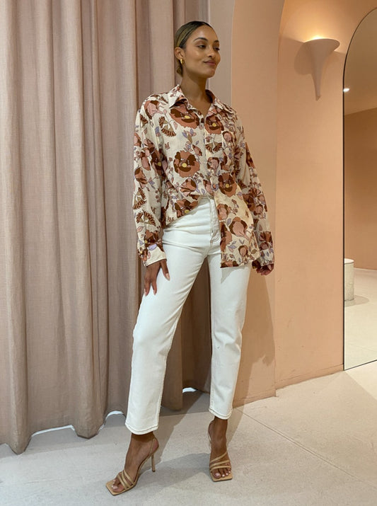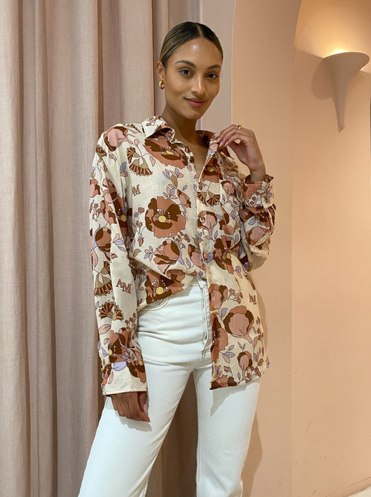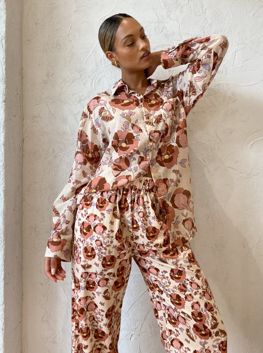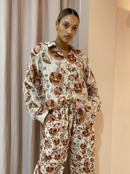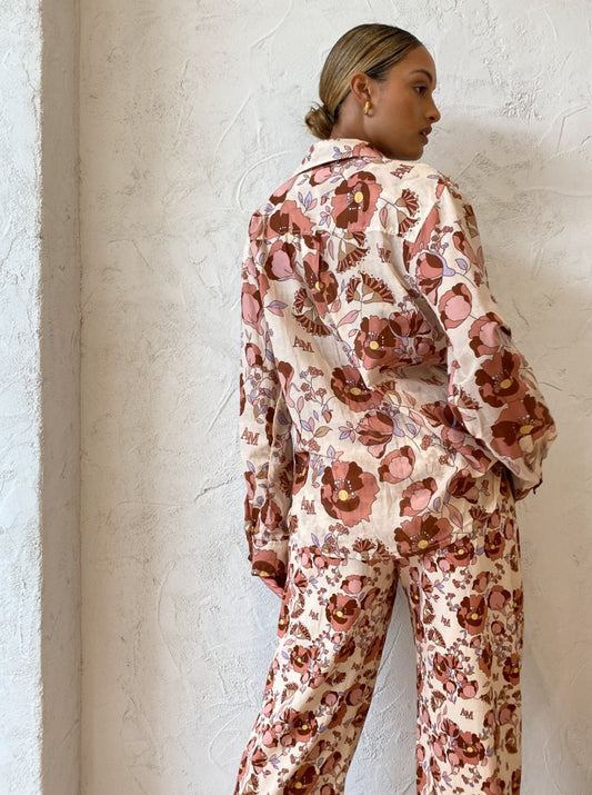 The Button Down Shirt in Blush Floral by Ambra Maddalena perfectly blends feminine charm with masculine inspired silhouettes.