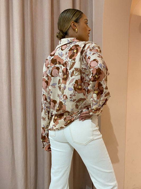 Ambra Maddalena Button Down Shirt in Floral Blush
