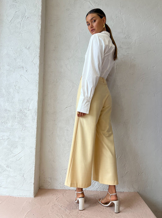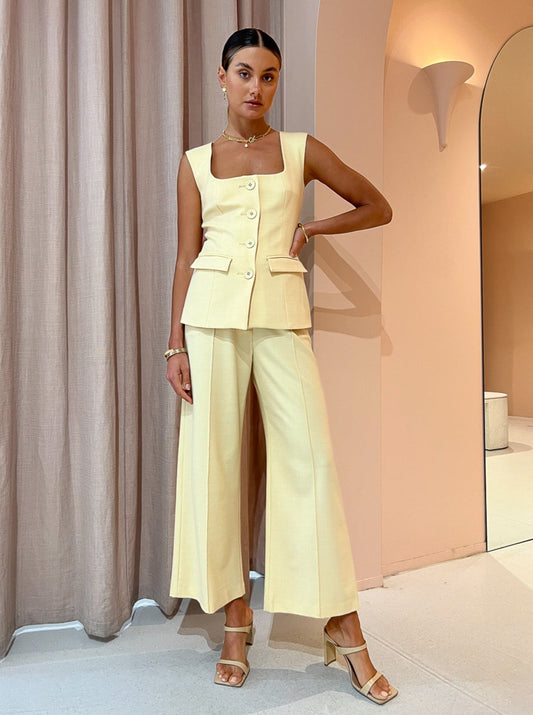 The Albert Pant in Butter by Anna Quan is a coveted classic silhouette re-imaged with a soft Butter hue.