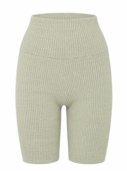 Crafted from a super soft ribbed knit, these high waisted and fitted shorts finish at mid thigh to see you through off-duty occasions with ease.