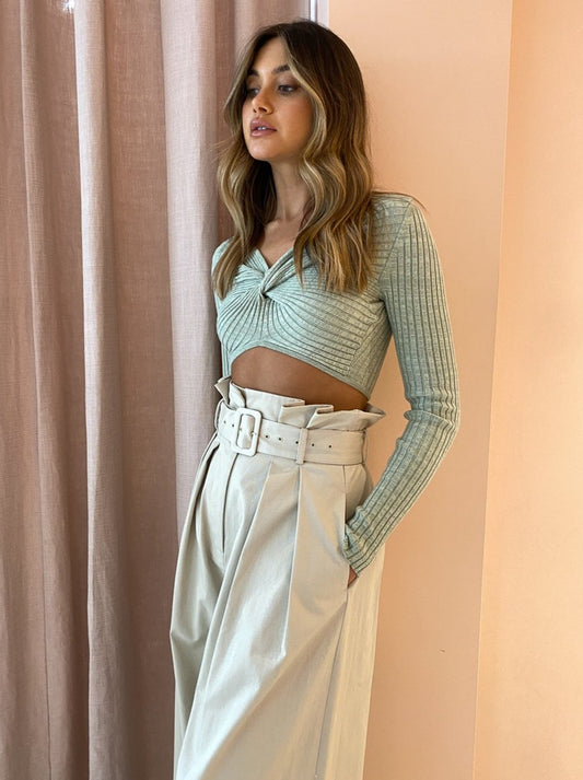 Coco Styling Tip: Complete the look with the Anna Quan Pascal Top in Sage, the Alias Mae Cassie Heel in Black, the Reliquia Molten Earrings in Gold and finish with the Brie Leon Evie Bag in Bone Croc