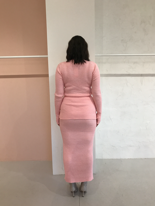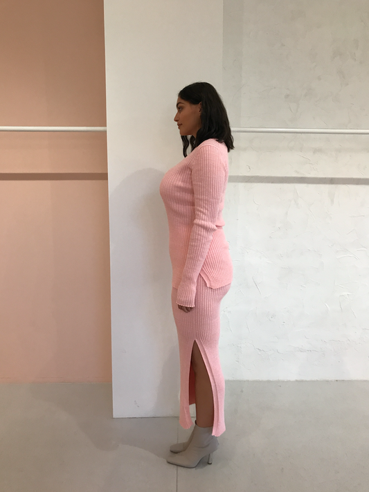 Anna Quan's mélange Mika top looks so good with the matching skirt, but you'll find it works equally well with jeans, too. It's rib-knitted from pink and white cotton and has a classic crew neckline.
