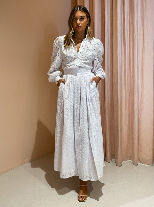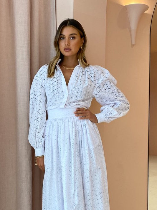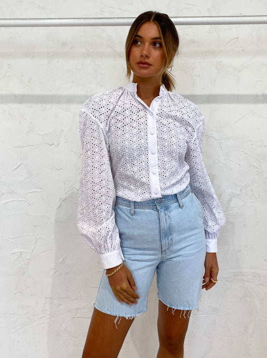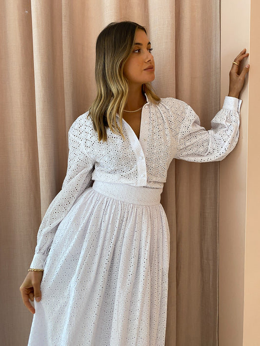 The Mira Top in Dandelion from Anna Quan is all in the details with this beautiful and romantic broderie anglaise fabric.