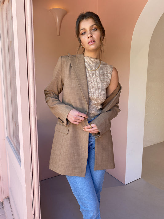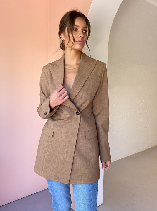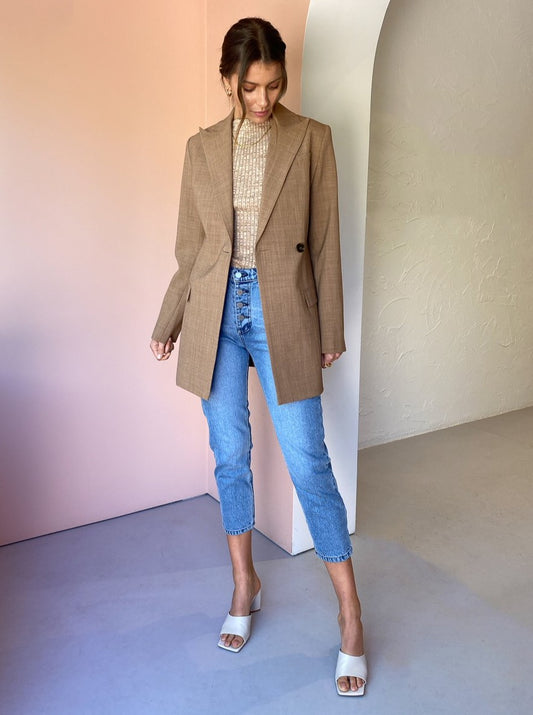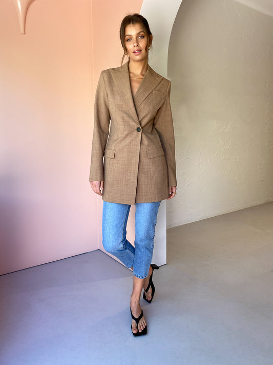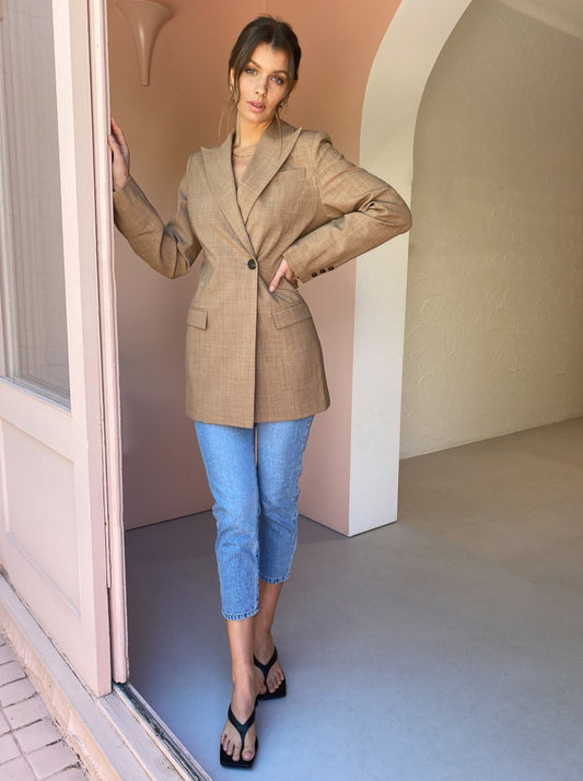The Anna Quan Sienna Jacket in Cinnamon is the perfect piece to add a tailored element to your transeasonal wardrobe.