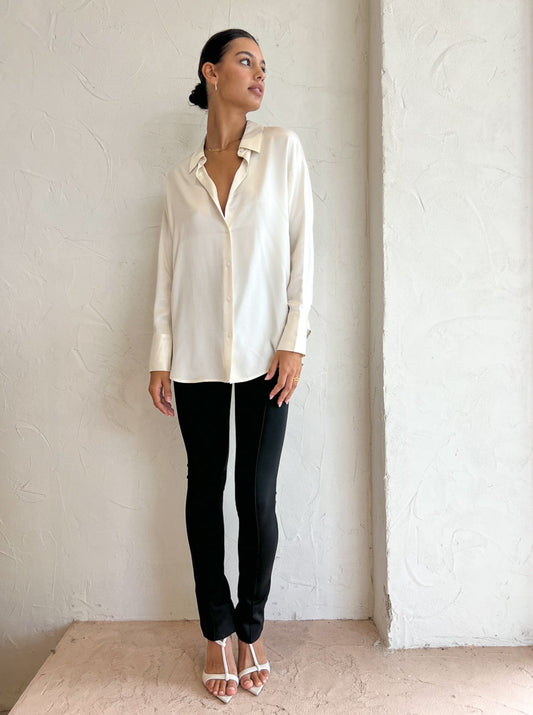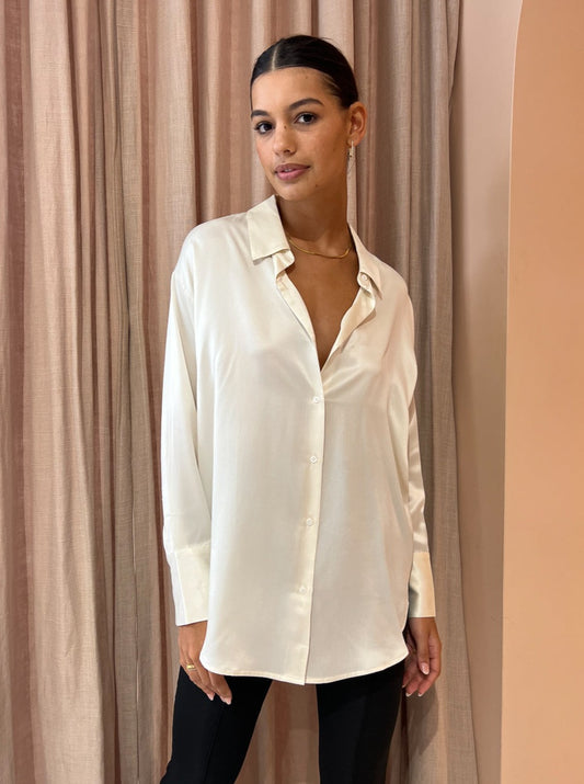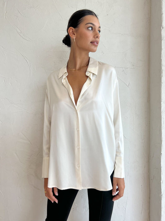Elevate your everyday wardrobe with a touch of luxury from Assembly Label with the Ena Silk Shirt in Cream.