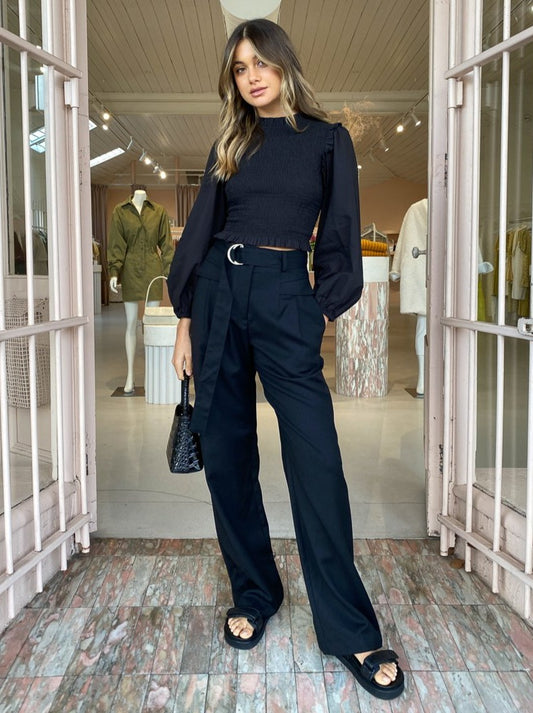 The Archie Pant in Black from Bec + Bridge are the new world twist to traditional tailoring coveted by Coco.