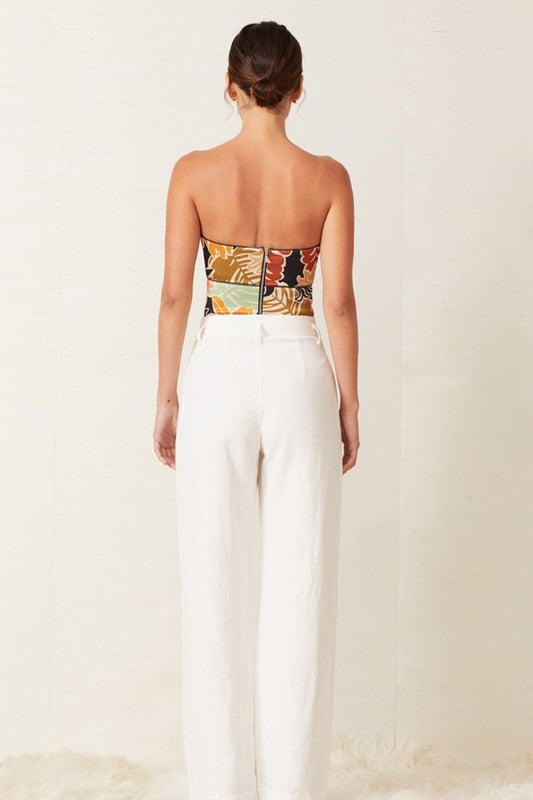 The Bec and Bridge 'Babelini' top is a bonded satin strapless bodice with wave panel, baby locked edges and is cropped in length.