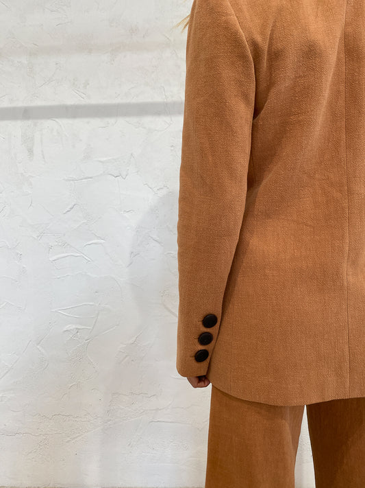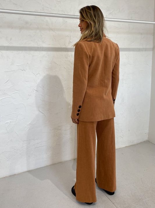 Crafted from an effortless Ramie/ Cotton blend, this relaxed fit blazer in a warming copper hue evokes a sense of 70's charm loved by Coco.