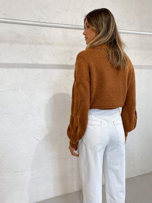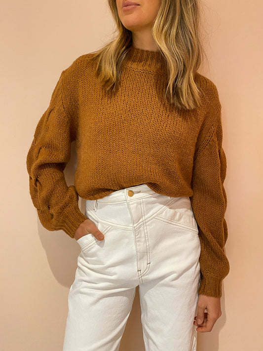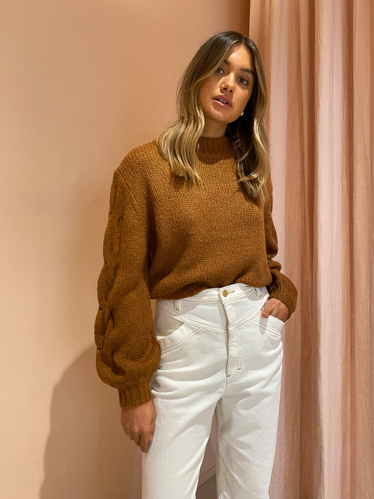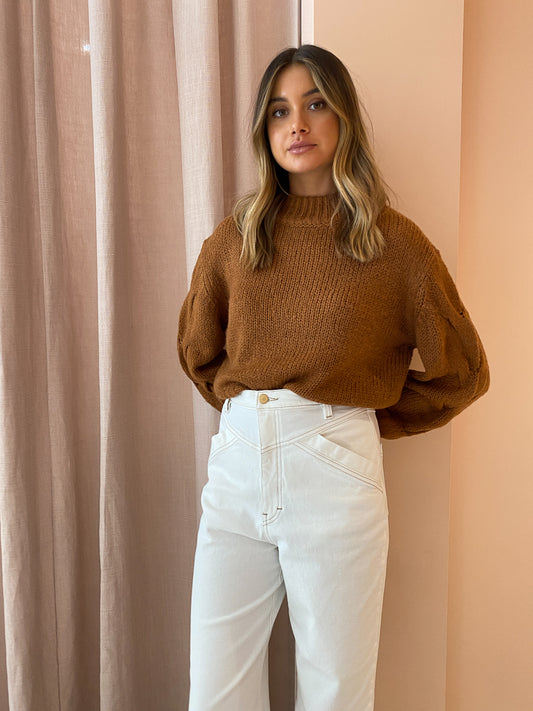 The Celeste Knit Jumper in Clay from Bec & Bridge has us falling in love with 70's silhouettes in warm chocolate hues.