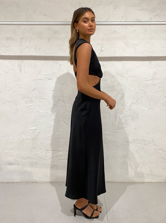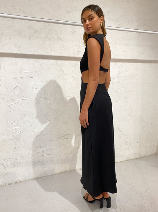 The Ciao Bella Midi Dress In Black from Bec + Bridge celebrates signature styling in a timeless hue.