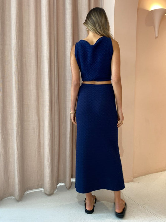 Bec + Bridge are adding texture to your investment wardrobe with the timeless Effie Knit Cut Out Dress in Ink.