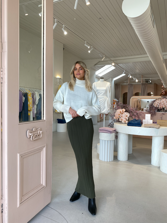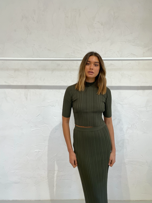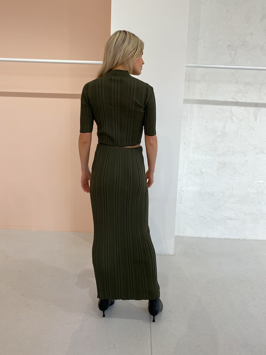 Bec and Bridge Esme Knit Midi Skirt in Olive