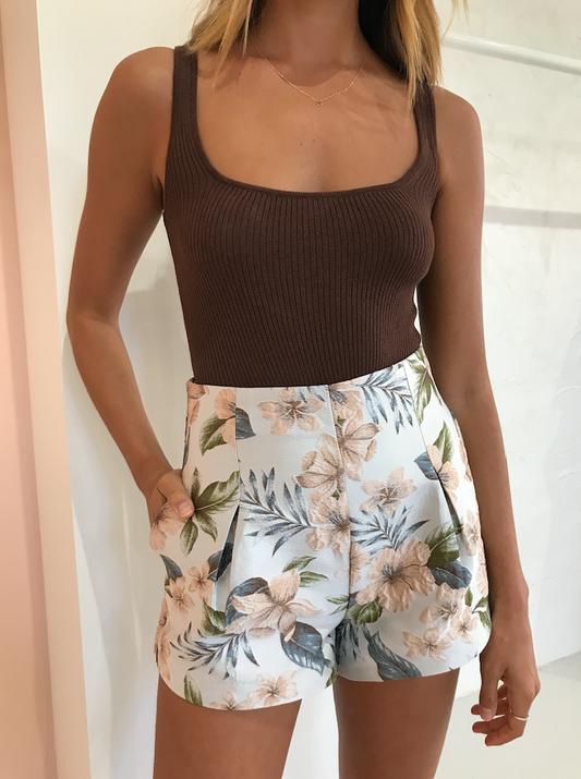 The Bec and Bridge Fleurette shorts are a high waist fit crafted from jacquard fabric with elongated tucks at front.