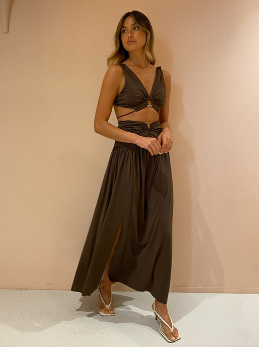 The Joelene Maxi Skirt is a coveted Bec + Bridge silhouette brought to life in a rich and earthy Cognac hue.