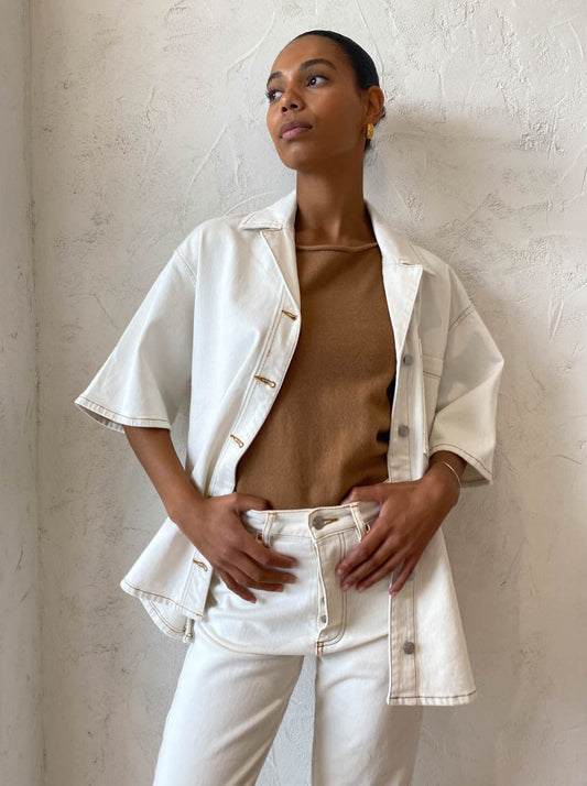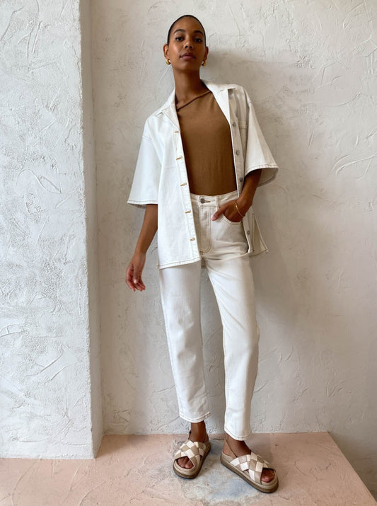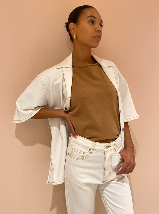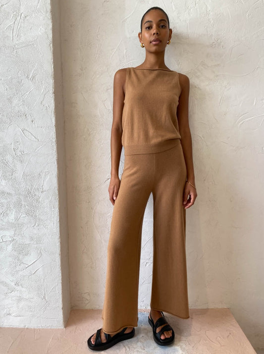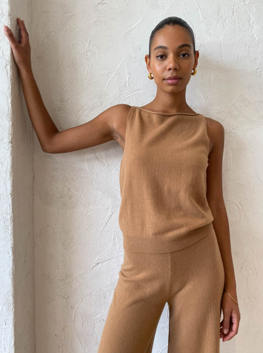 Complete the set with the matching Ladina Knit Top in Camel for your weekend brunch dates, or transition to long lunches styling the Ladina Tank under the Camilla and Marc Ines Shirt and Betty Jean in Salt.