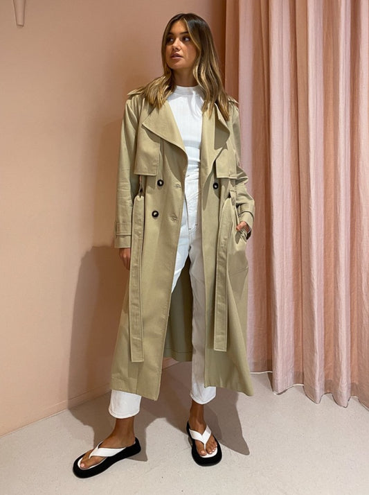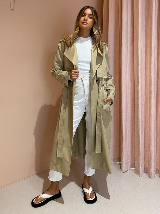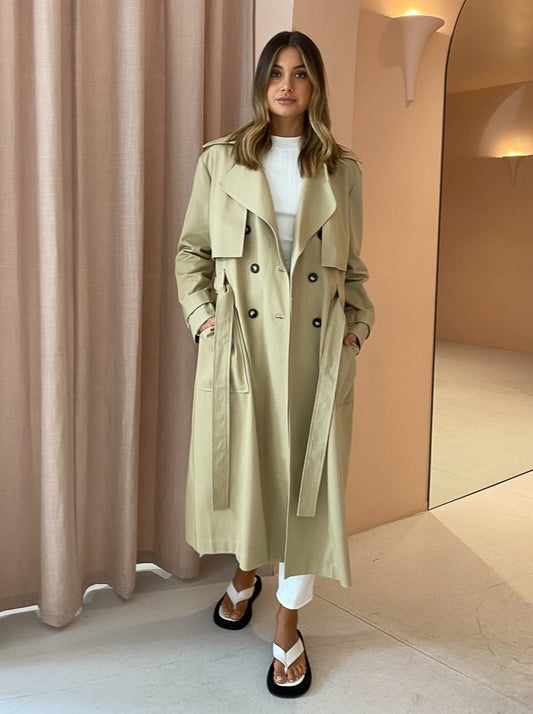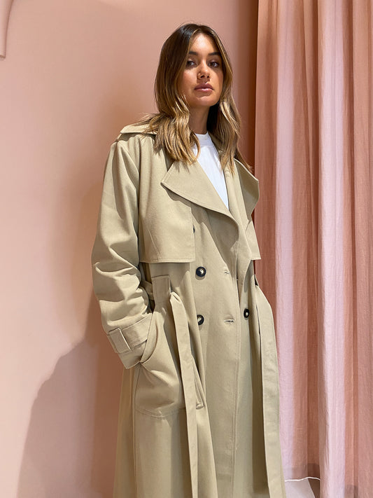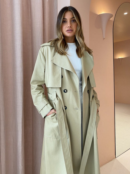 Celebrating traditional styling, this double breasted trench has been designed with Coco girls in mind for adding an elevated essential to any look.