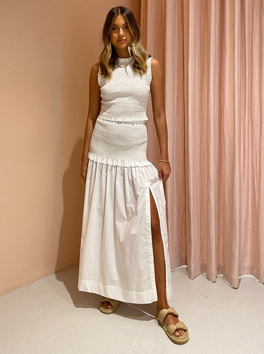 Coming into cooler months, The Minour Maxi Skirt in Ivory by Bec & Bridge is a wardrobe staple.
