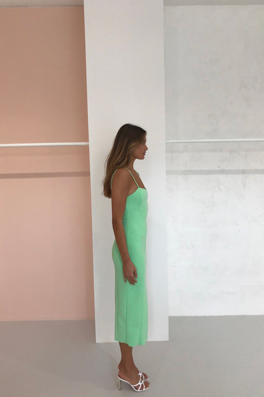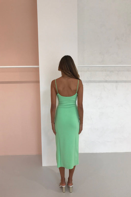 We love the pop neon green colourway in the Bec and Bridge Missy Asym midi.