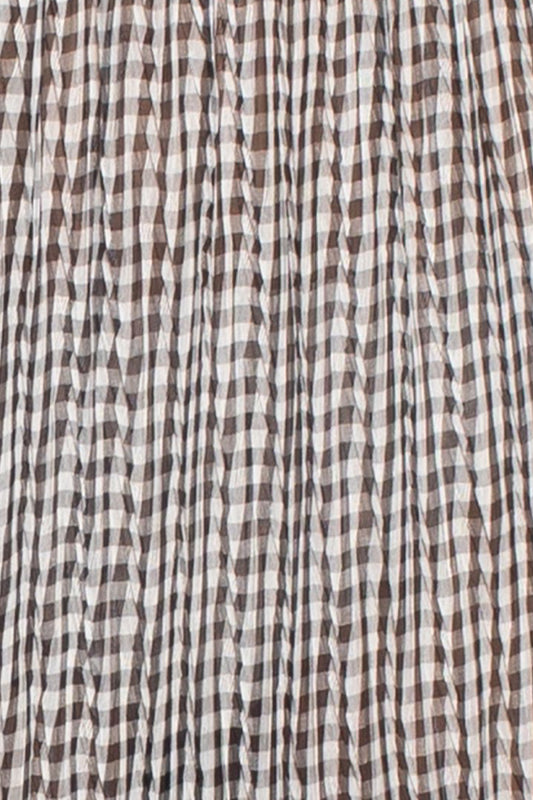 This classic B&B piece is a pleated long sleeve check mini dress with ruffle details. Crafted from 100% polyester, the Nadine Mini dress features blouson sleeves, fitted skirt with ruffle on shoulders, cuffs and hem.