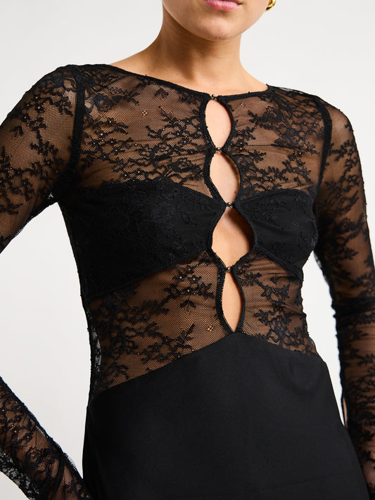 Bec and Bridge Nora Lace L/S Maxi Dress in Black