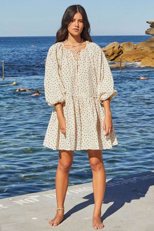 Bec and Bridge Paradise Bay Mini Dress in Cream Based Spot