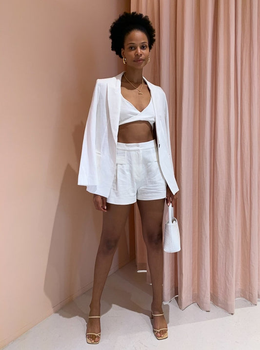 Coco Styling Tip: Complete the chic co-ord with the Phoebe Top in Ivory and the Phoebe Jacket in Ivory.