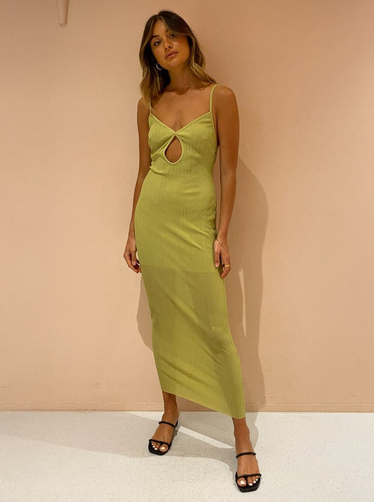 Celebrate a day full of compliments and flattering sculptural silhouettes in the Plisse Maxi Dress in Pistachio by Bec + Bridge.