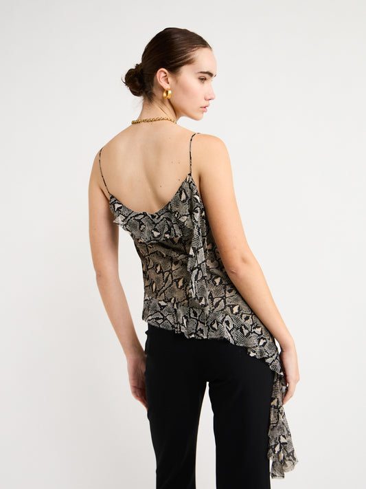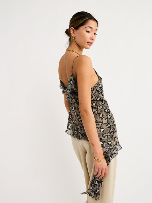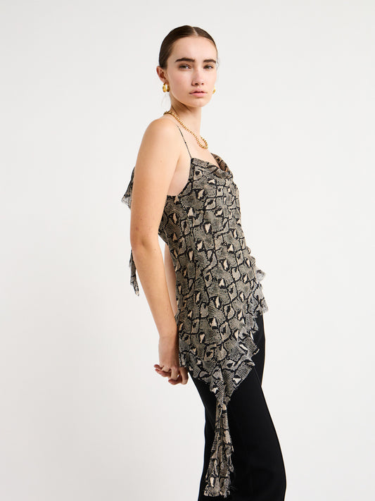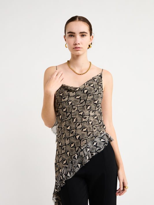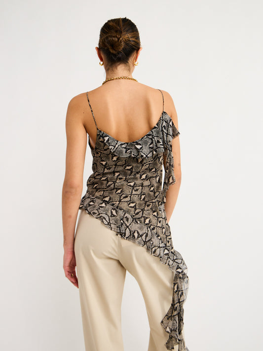 This sleeveless top is cut from a unique python printed silk, exuding timeless style and making it the ideal addition to any capsule wardrobe for off-duty occasions and nights out.