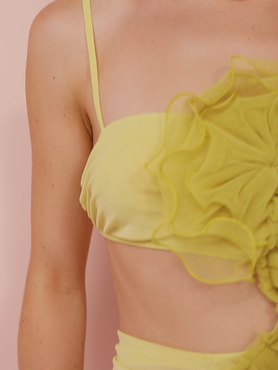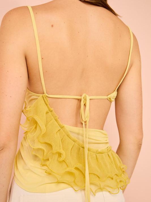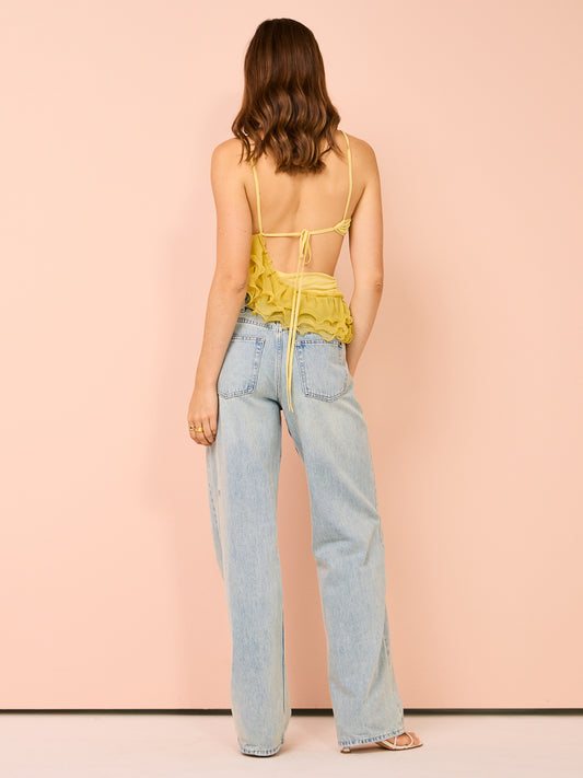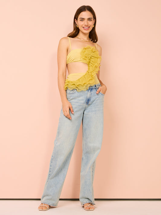 Elevate your wardrobe this season with the luxurious Bec & Bridge Spiral Crush Top in Citrus.