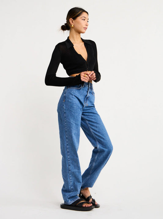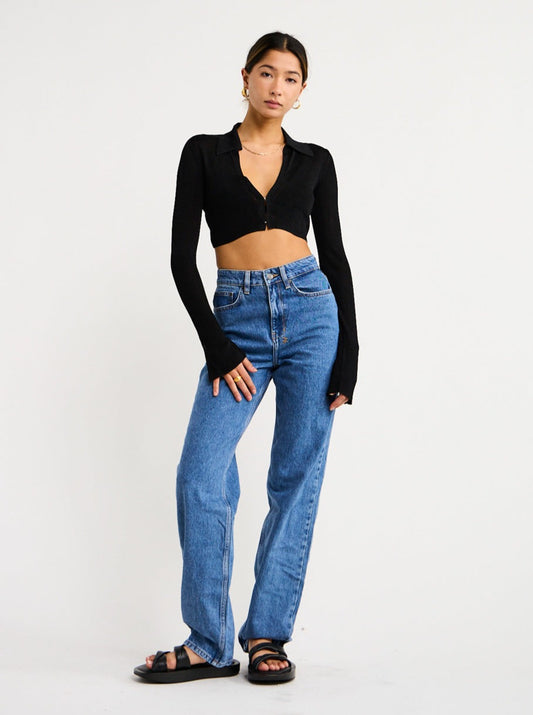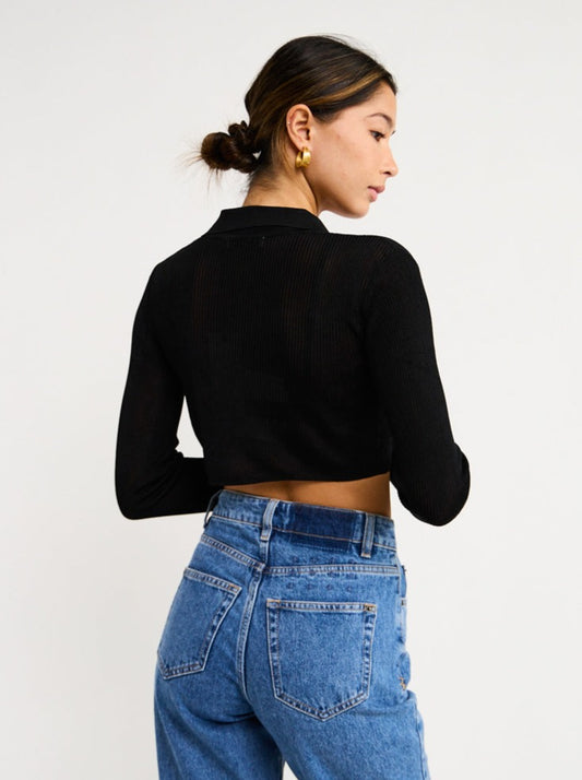 Bec and Bridge Tilda L/S Knit Crop Top in Black