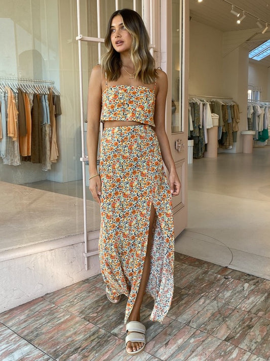 The Coco girls are wearing this ultra feminine floral printed midi skirt to twilight drinks, sunset celebration and weekend picnics with their besties.