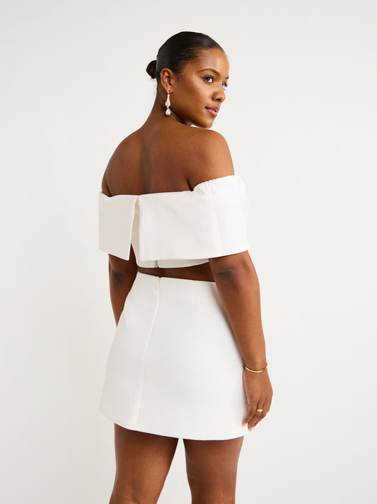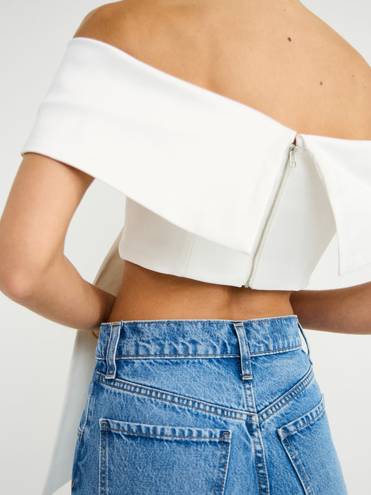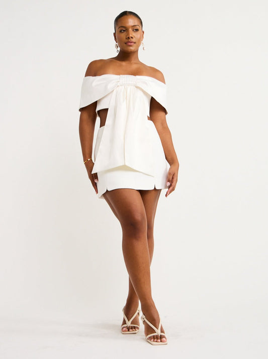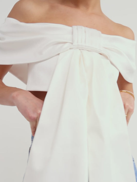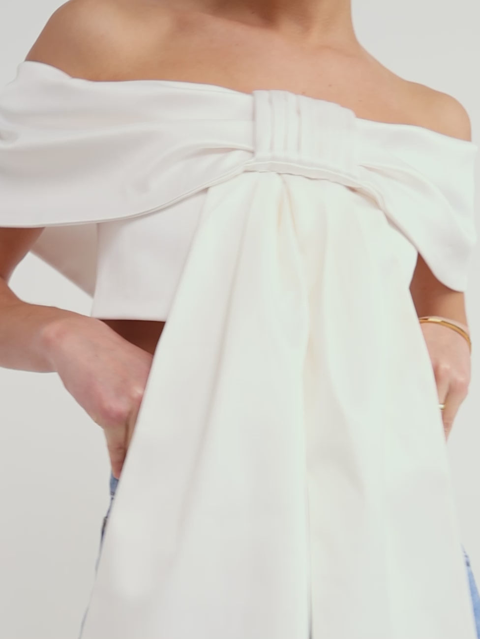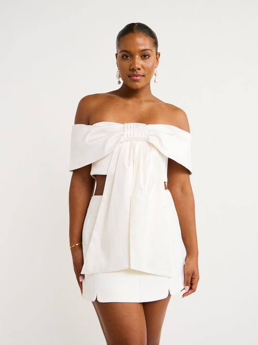 Crafted with a statement bow feature that wraps delicately over the arms, this top also features under bodice boning for added structure and support.