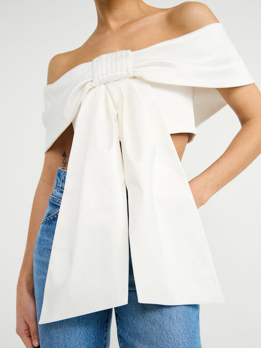Indulge in luxurious femininity with the Bettina Bow Top in Ivory from By Johnny.