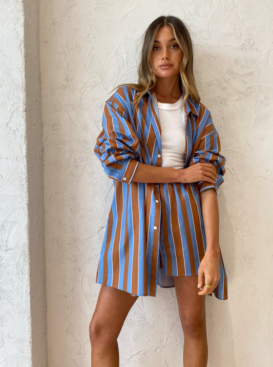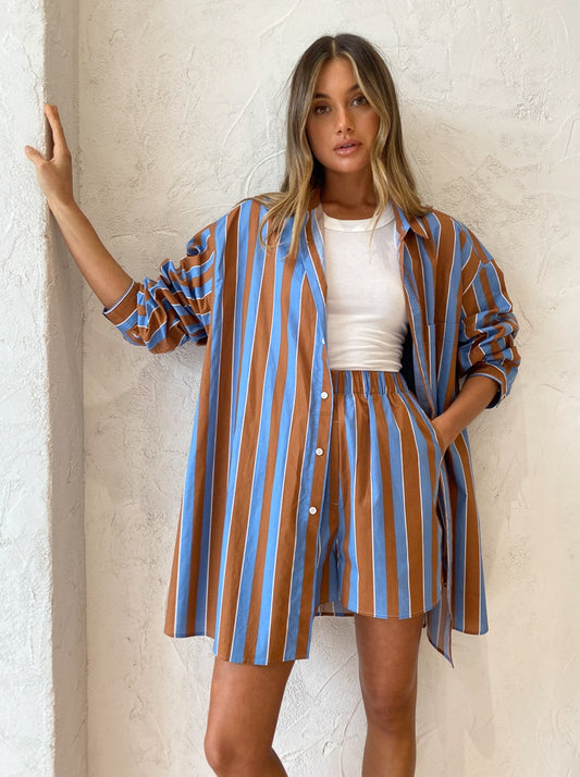 Designed to sit relaxed on the body, Coco girls are styling this shirt with the matching shorts for a sweet striped moment.