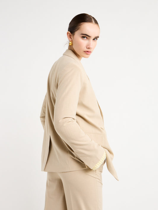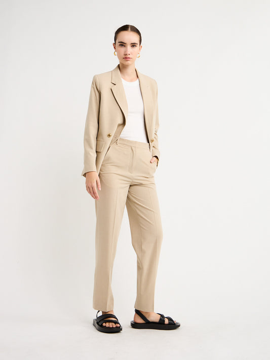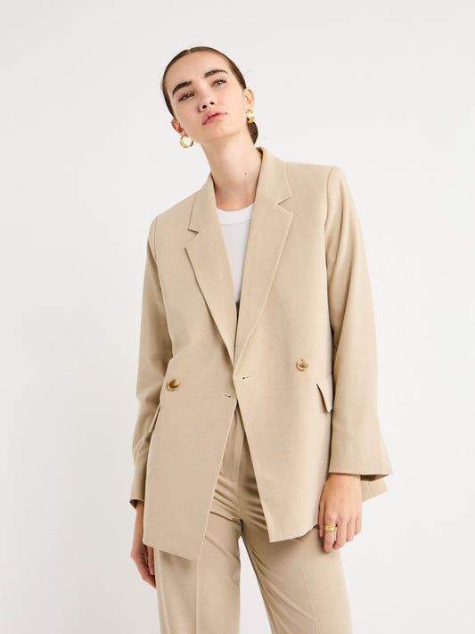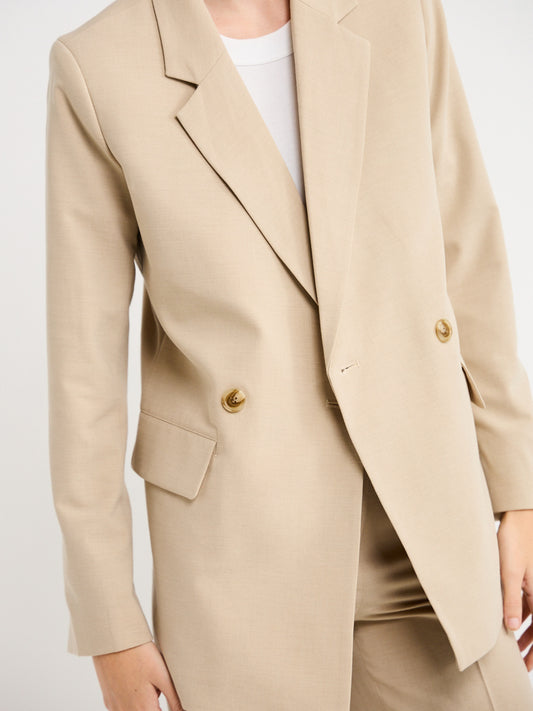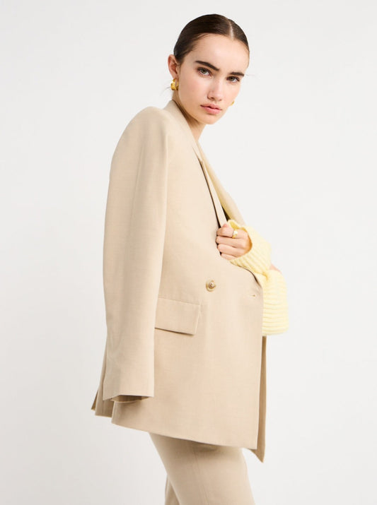 Perfect for an off-duty look or desk to dusk occasion, this double-breasted piece pairs perfectly with the Lawrence Pants in Beige for effortless elegance.