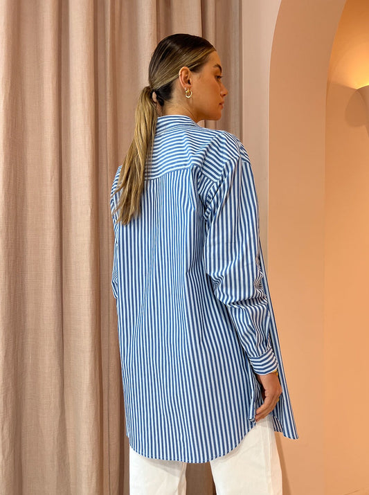 Crafted from a crisp cotton fabrication, this long line shirt sits oversized on the body. Inspired by men’s shirting it features a collar, long cuffed sleeves, button through front placket and a single patch pocket.