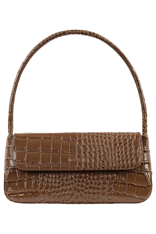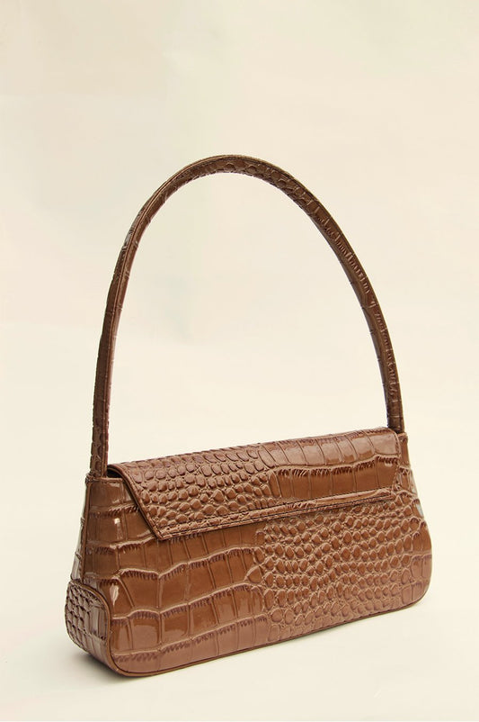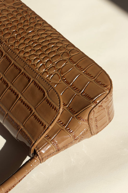 The Brie Leon Camille Bag in Mocha Oily Croc is the perfect 90's inspired bag to add to your Coco wardrobe.