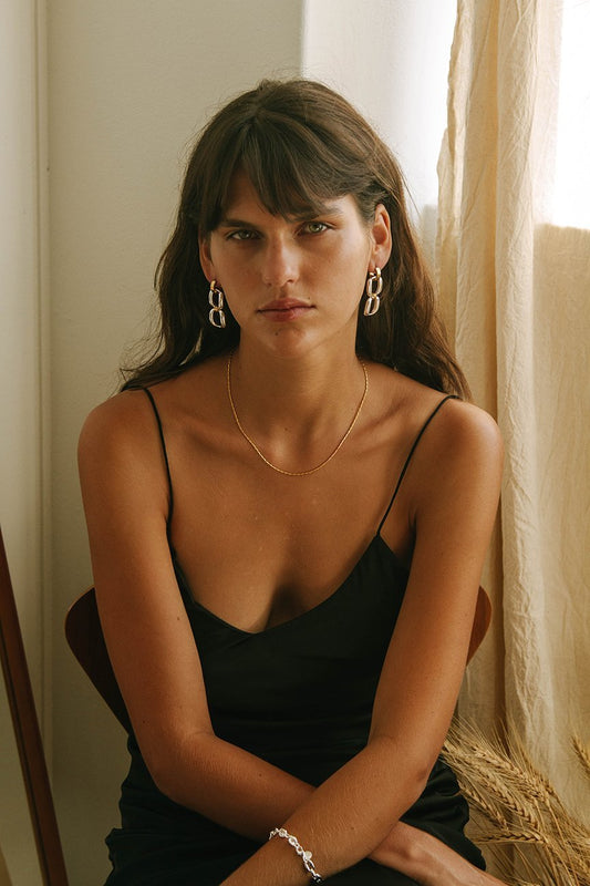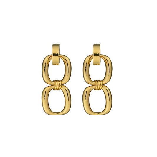 The Brie Leon Enlazar earring in Gold are a large chain link design on sleepers, that can be worn with or without drop detail.