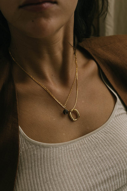 A Coco HQ favourite. The Brie Leon Enlazar Pendant Gold is a gold plated necklace that measures: 48cm long box chain and pendant 1.9 x 1.8cm.