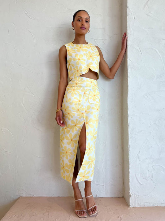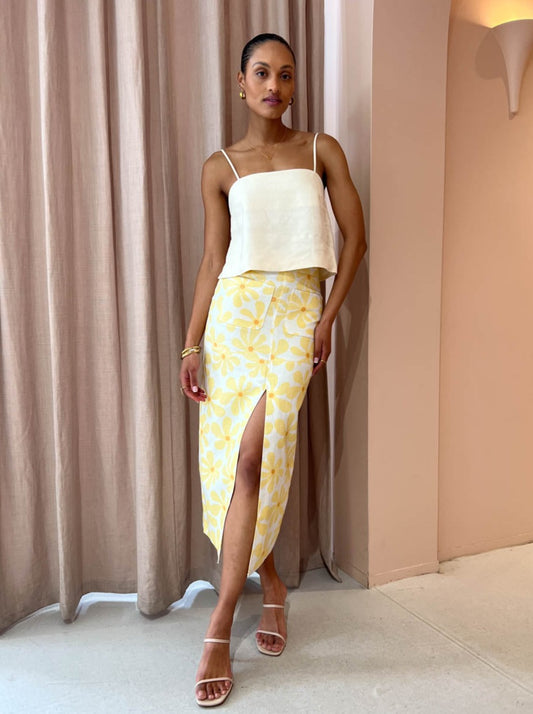 Complete the set with the matching Callie Sun Crop or add contrast with the Friends with Frank Mila Top in Ivory Linen and finish with the Alias Mae Zi Heel in Cream, Reliquia Sevilla Earrings in Gold, Porter Tube Bangle in Gold, Amber Sceats Coco Bracelet in Gold and Porter Harp Ring in Gold.