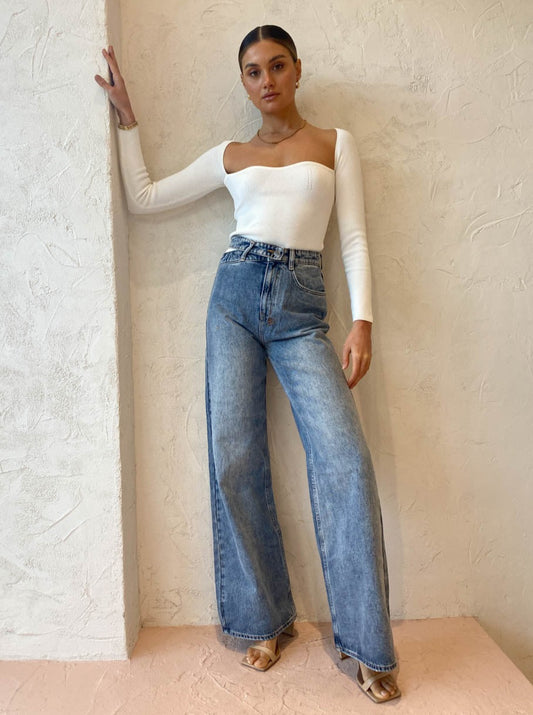 Featuring a wide curved front neckline and subtle ribbed detailing on the bust, the Eliza Knit makes trans-seasonal dressing effortlessly easy.