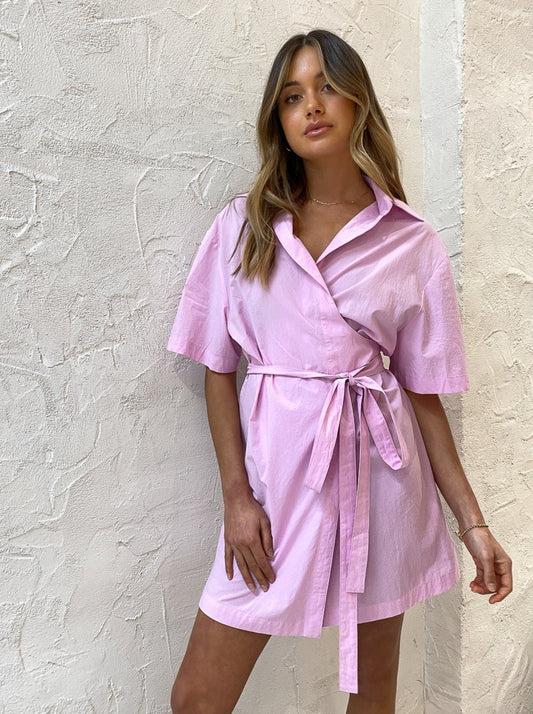 The By Johnny Izzy Cotton Wrap Shirt Dress in Lilac is a classic shirt style silhouette in our Spring colour crush.