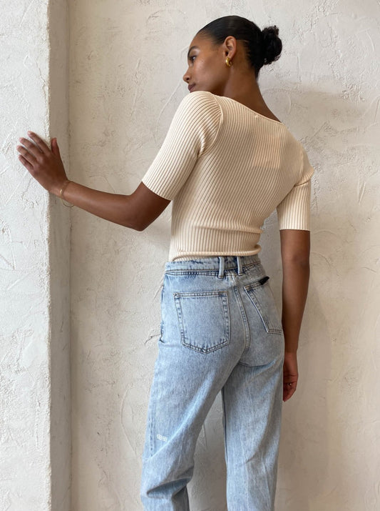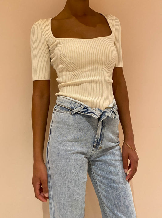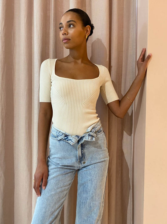 By Johnny are heightening your wardrobe staples with sleek sophistication in the Panelled Rib Knit Top in Creme.