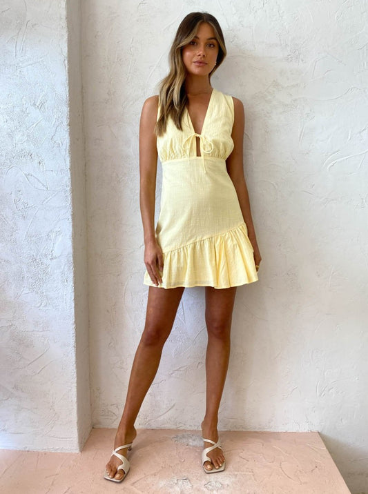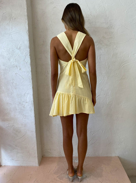 Lightweight and breathable, the Calypso Tie Mini is fully lined, crafted from a lightweight textured Cotton fabrication perfect for sun-kissed summer days and balmy twilight evenings. Featuring a plunging V neckline that highlights the décolletage, a workable tie back detail, and gathers at the shoulder seam and under-bust.