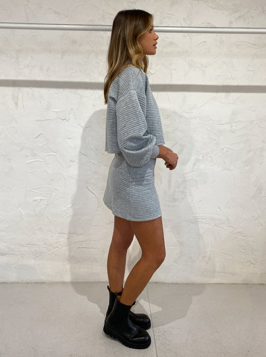 EXCLUSIVE To Coco. The By Nicola Charlotte Mini Skirt in Grey Marle is the versatile and warm mini addition to your Coco closet.