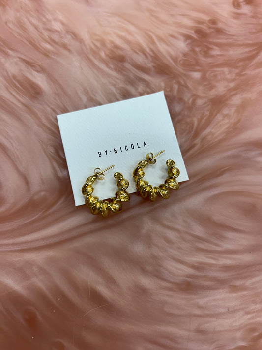 The Coco Earrings from By Nicola are made from stainless steel and 18k gold plated. Waterproof, tarnish resistant and come packaged in a small gift pouch.
