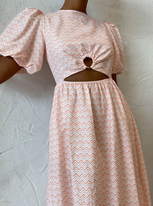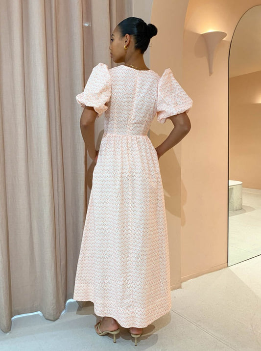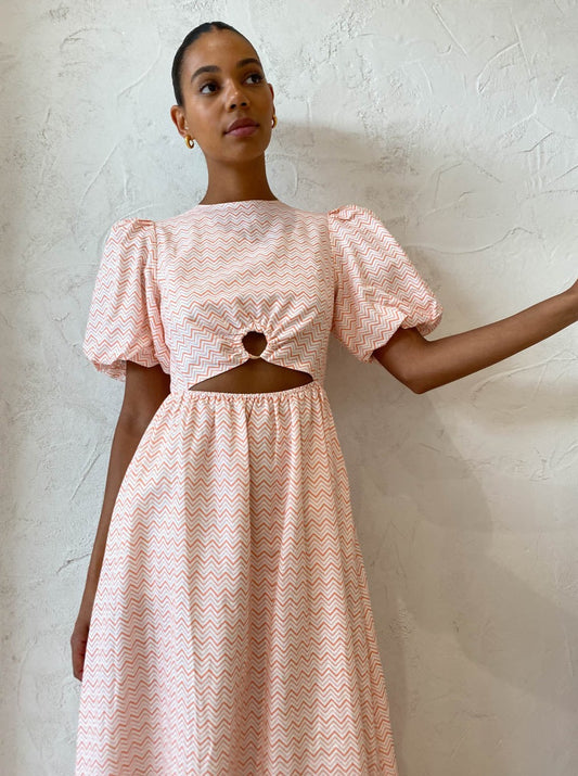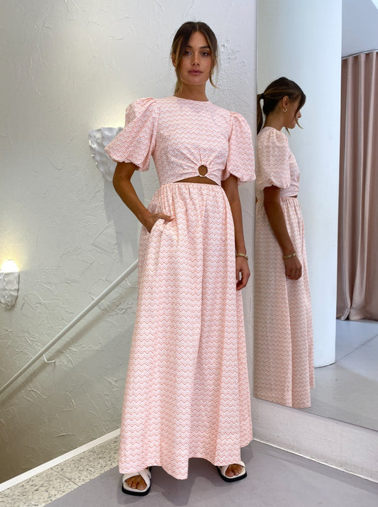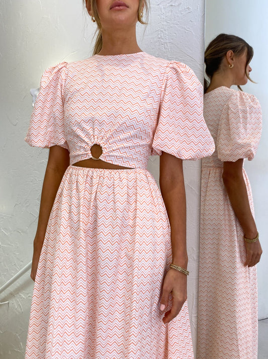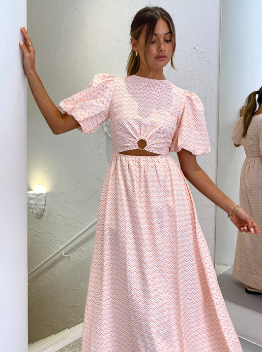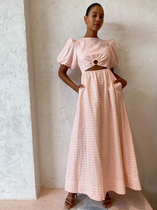 By Nicola Dahlia Ring Detail Maxi Dress in Melon Chevron