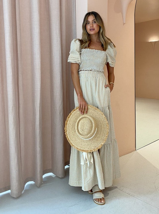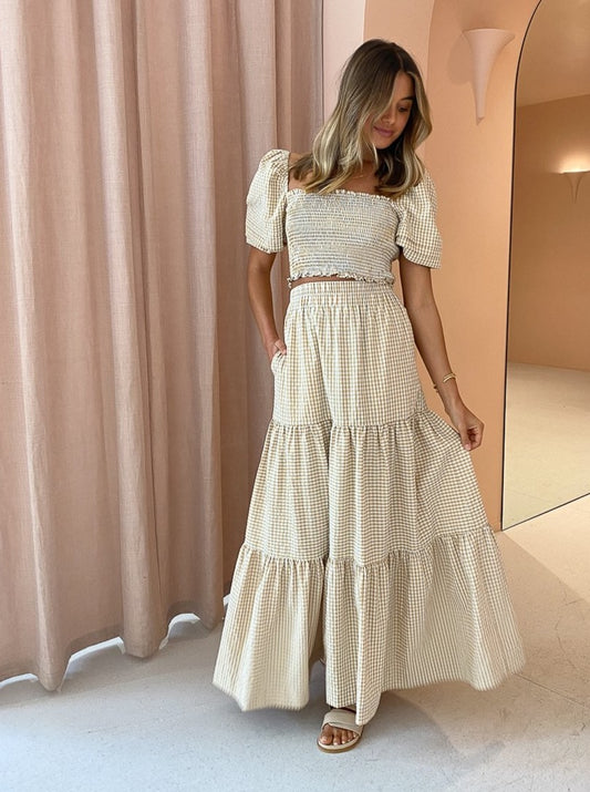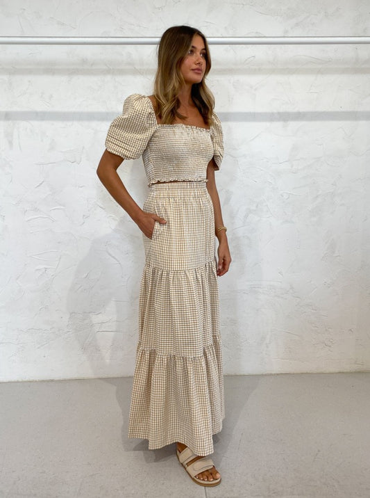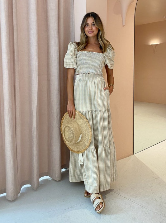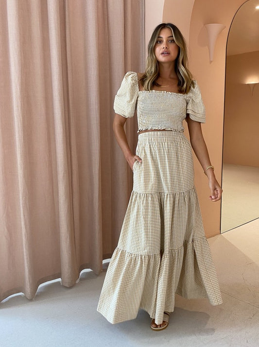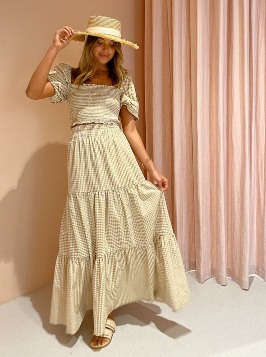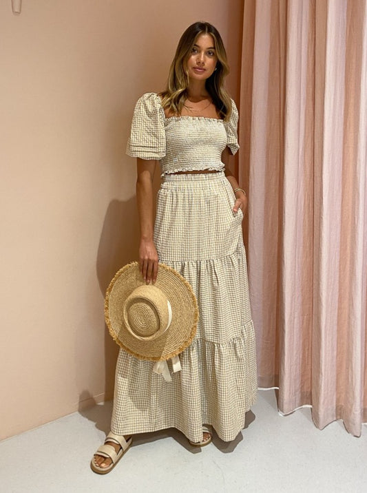 By Nicola Elderflower Maxi Skirt in Mustard Check