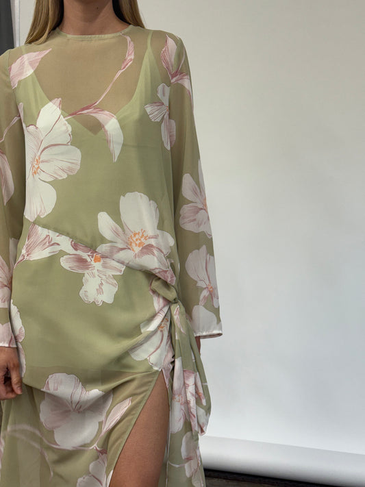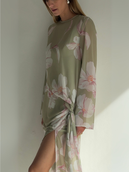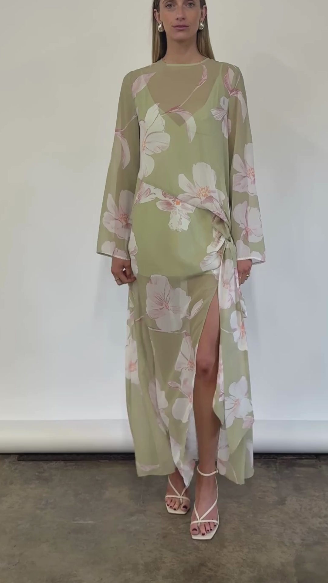 Made from a soft chiffon, this style come with an adjustable slip and tie that can be styled through the twist detail, around the neck and waist.